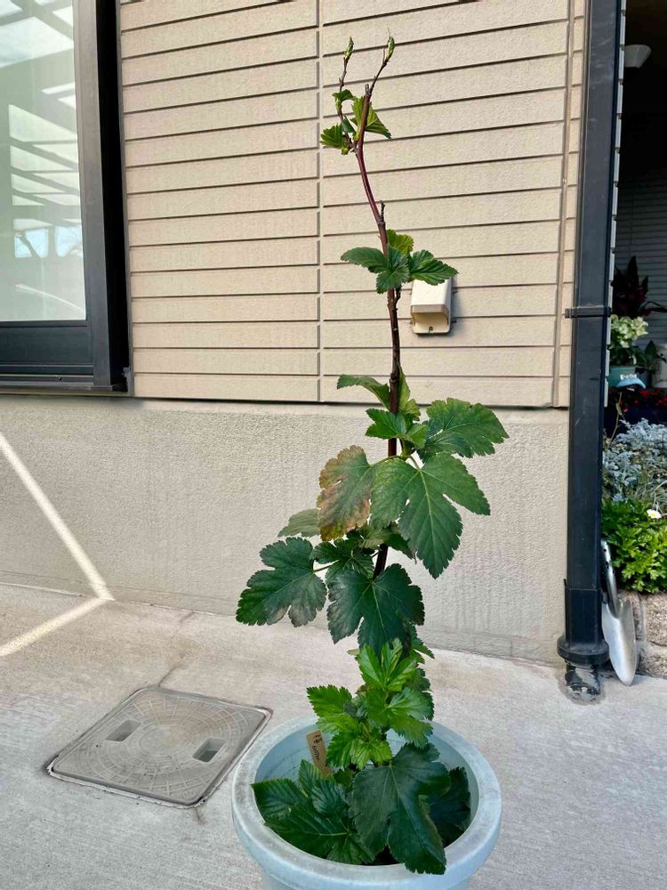店員さんが植木鉢を一緒に見に行き、かなり成長してますが600円の札だからそのままでいいですよって事でお持ち帰りしました。