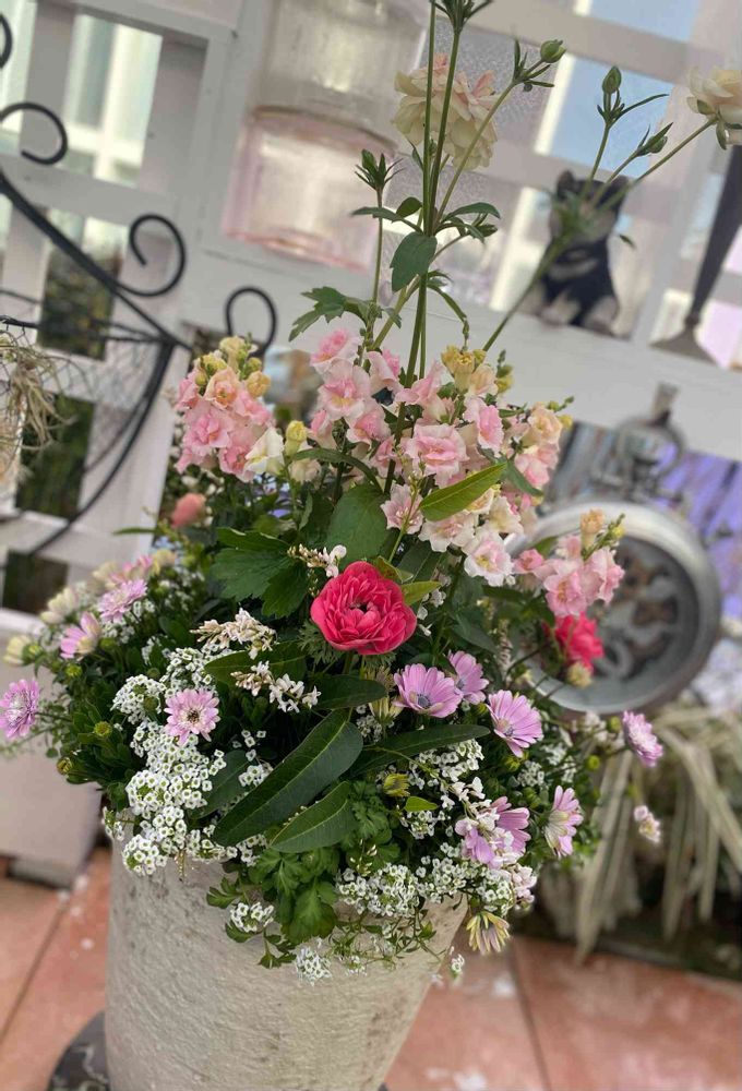 こちらの写真はラナンキュラスラックスやアネモネ、金魚草を使った作品✨