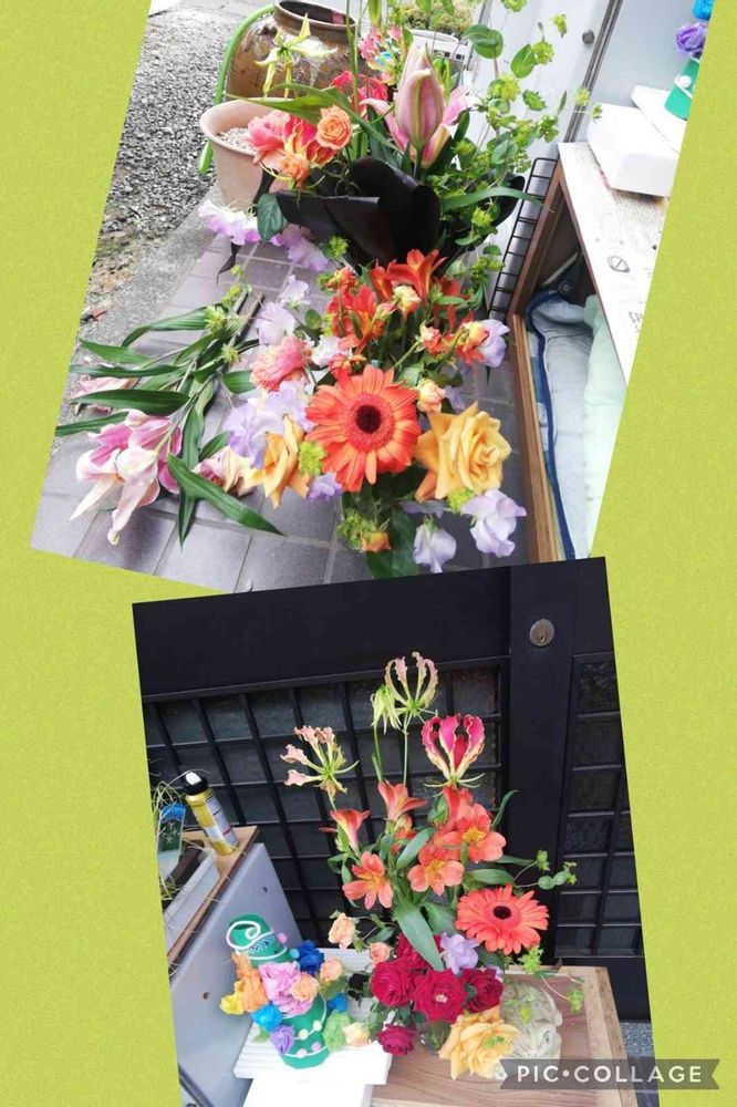グロリオサ、ユリ色々入ってますね😃綺麗ですねちょとちょこちょこ分けてあっちこっちに飾ります。うらやましい🎵