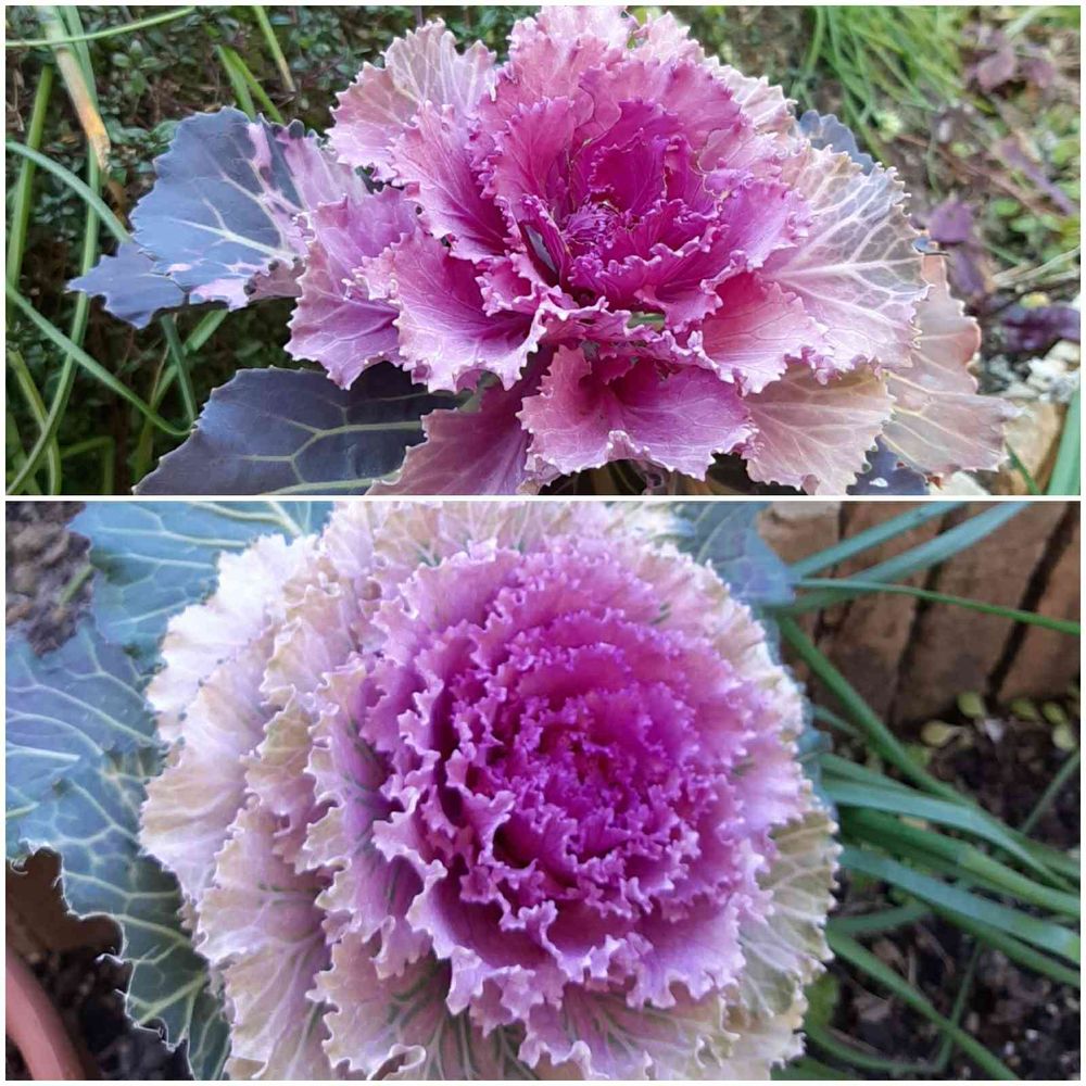 私も、去年春すぎに寄植えを解体したときに地植えにしてから、巨大化しました!地植えにしたところも一緒ですね😄去年12月にその葉牡丹の投稿をしていますので、よろしければご覧ください🤗