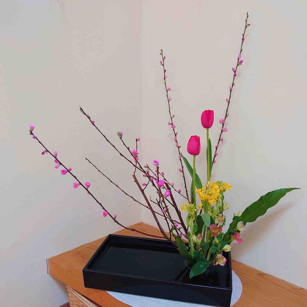 まだ外はつめたいですが、玄関先に春を設置しました🌺