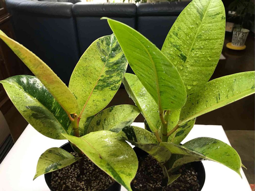 フィカス・ジンは葉の散り斑が美しく、古くなると緑が強くなり色の変化を楽しませてくれるのでお気に入りのフィカスです🪴