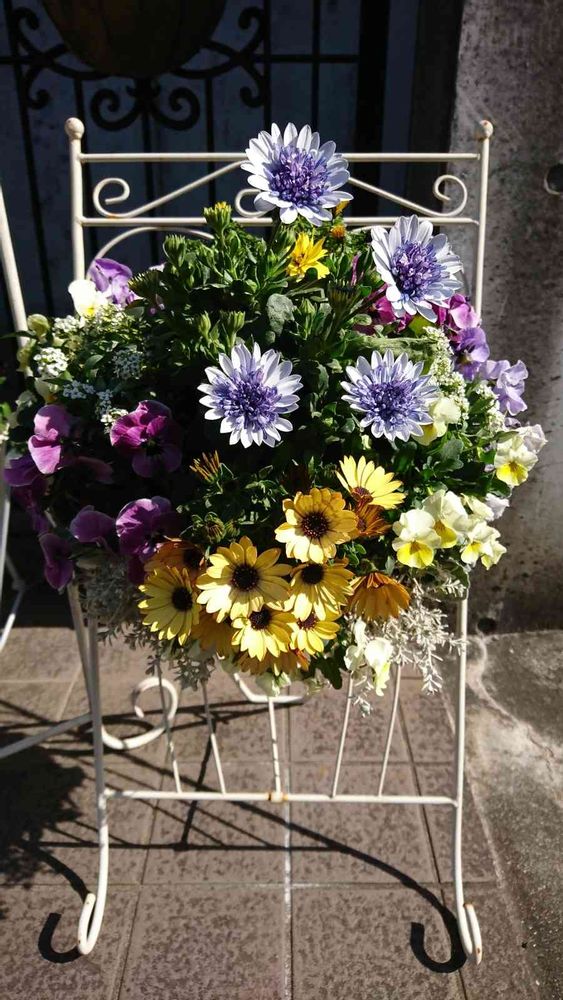 葉牡丹のリースが色あせしてきたのでオステオのハンギングにチェンジしました😊💕
