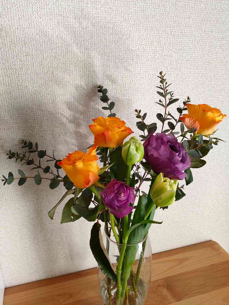 切り花を自宅で飾ってます。バラが大好きです。 週末に花を買う生活です。