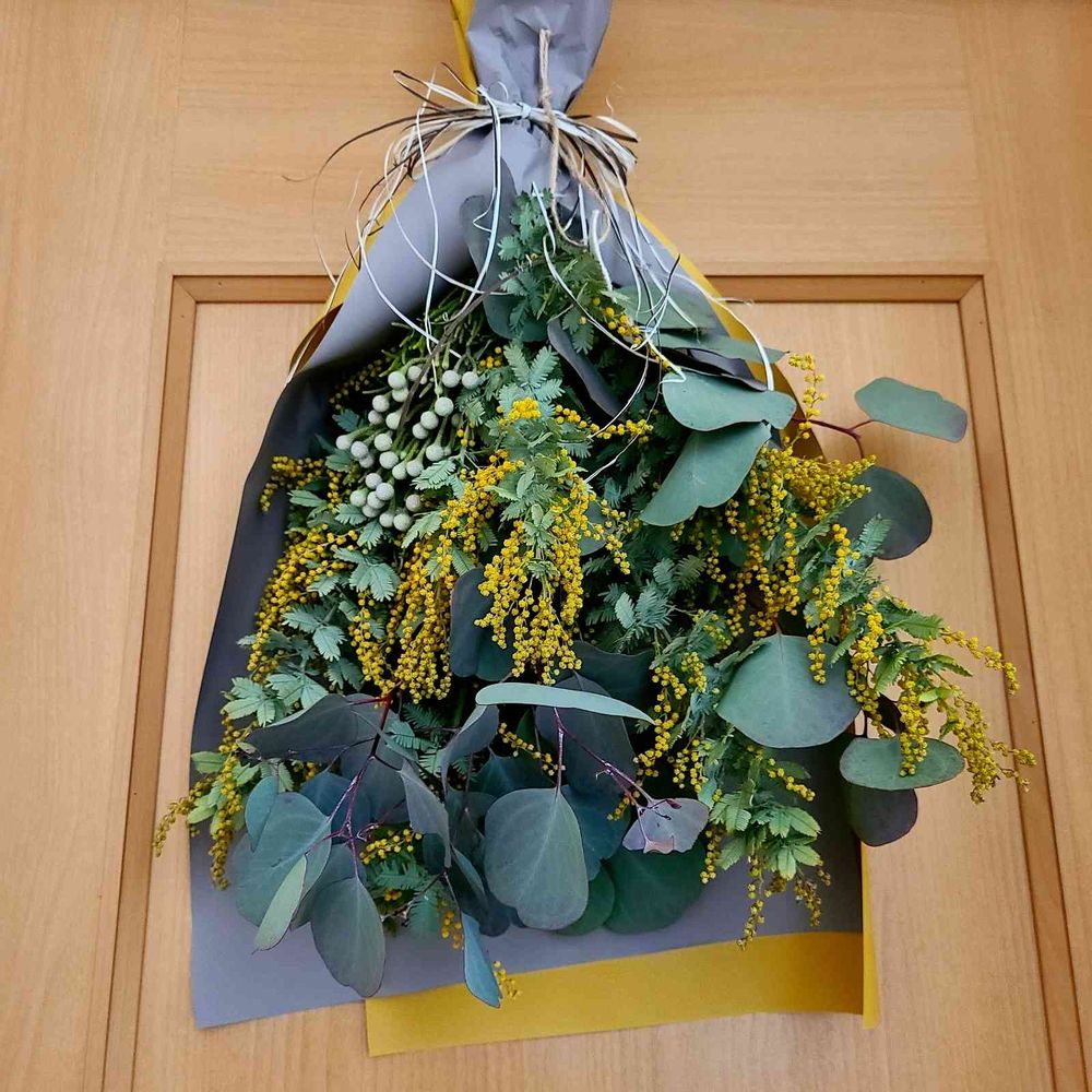 どこのお花屋さんでも、今年はミモザの開花が遅いと言ってました。