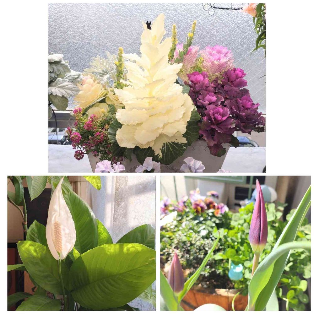 yunko✩.*˚さんのバルコニー/ベランダ,スパティフィラム,葉牡丹フレアホワイトの投稿画像