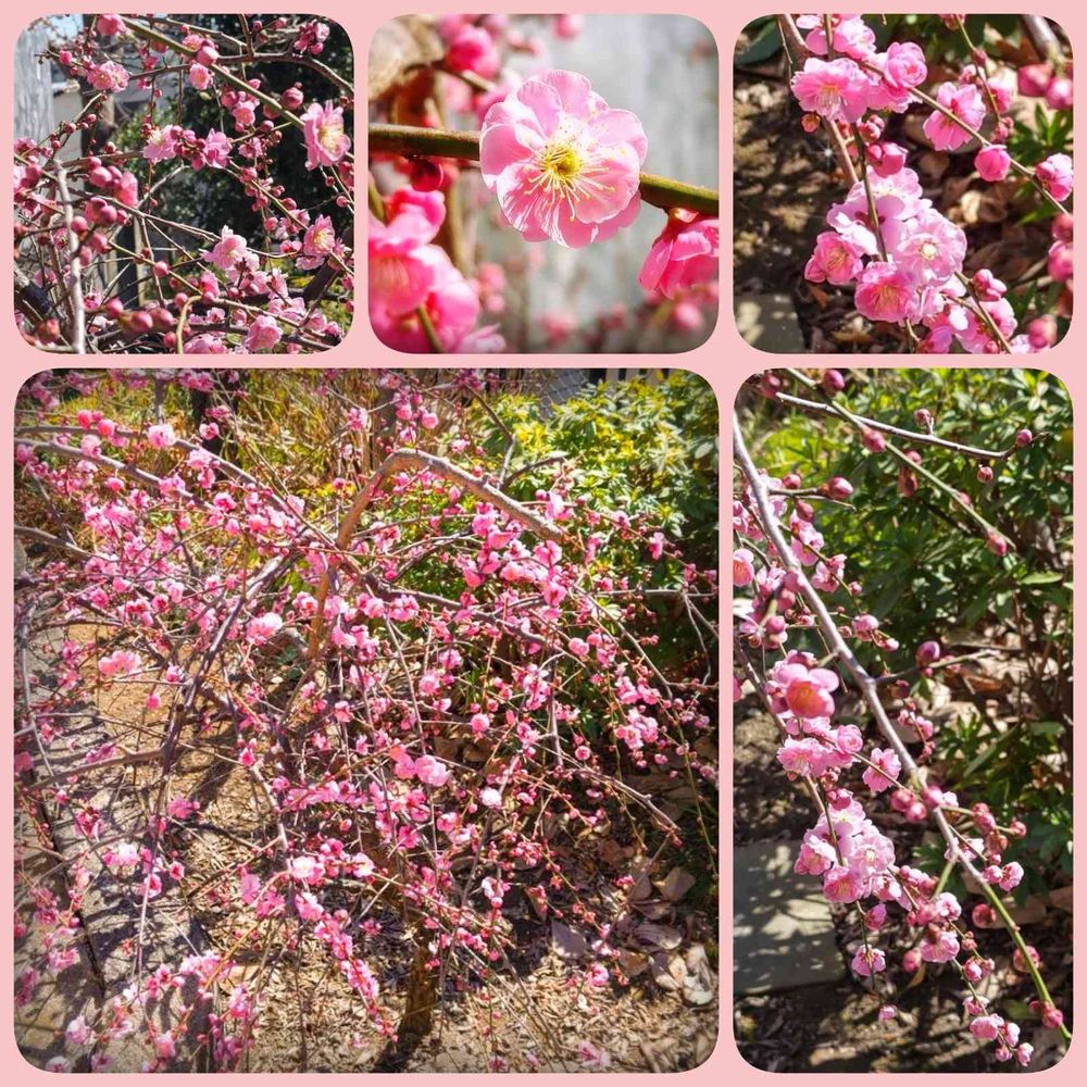 可愛いしだれ梅さん✨😍ご近所の方も見て癒されてますね💕
