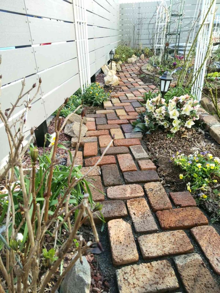 ここは日陰になっちゃうので、明るいレンガで小路作ると、暗くならなくて良いんですよ😆