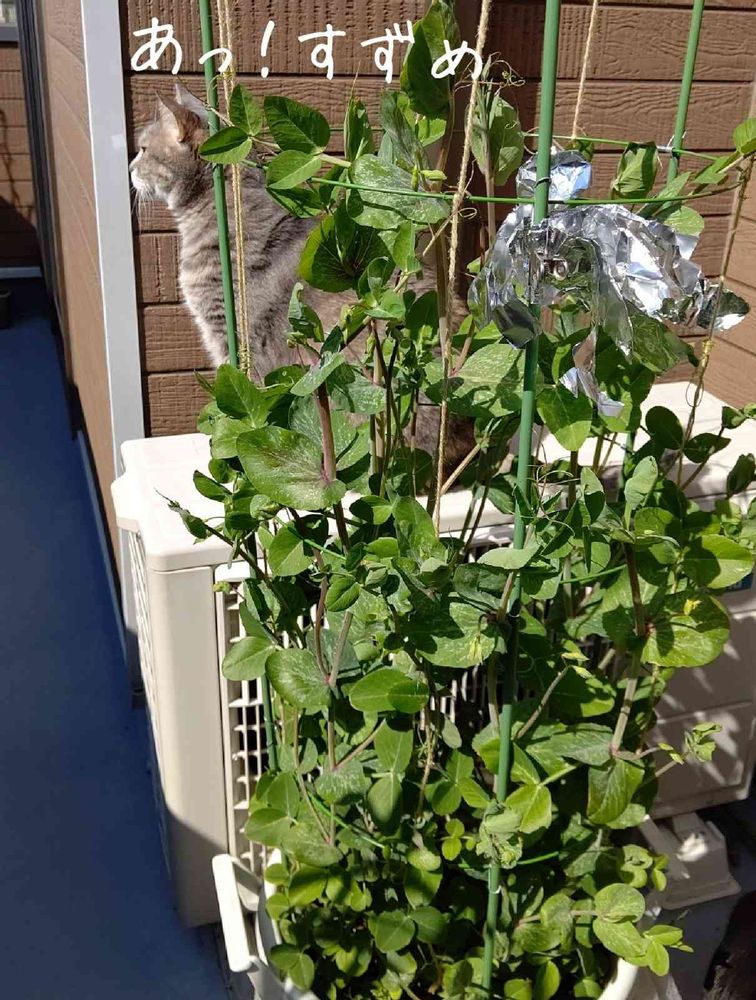 インゲンに つけてる銀紙が カシャカシャ鳴るので 気になったみたいです😼