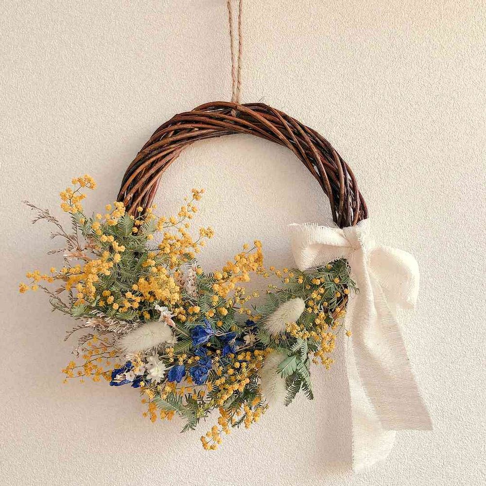 インテリア,ミモザのリース,デルフィニウム ドライフラワーの投稿画像