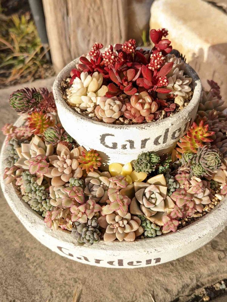 多肉コンテストにはぴったりな2段重ね寄せ植えゴージャス😙👍👍