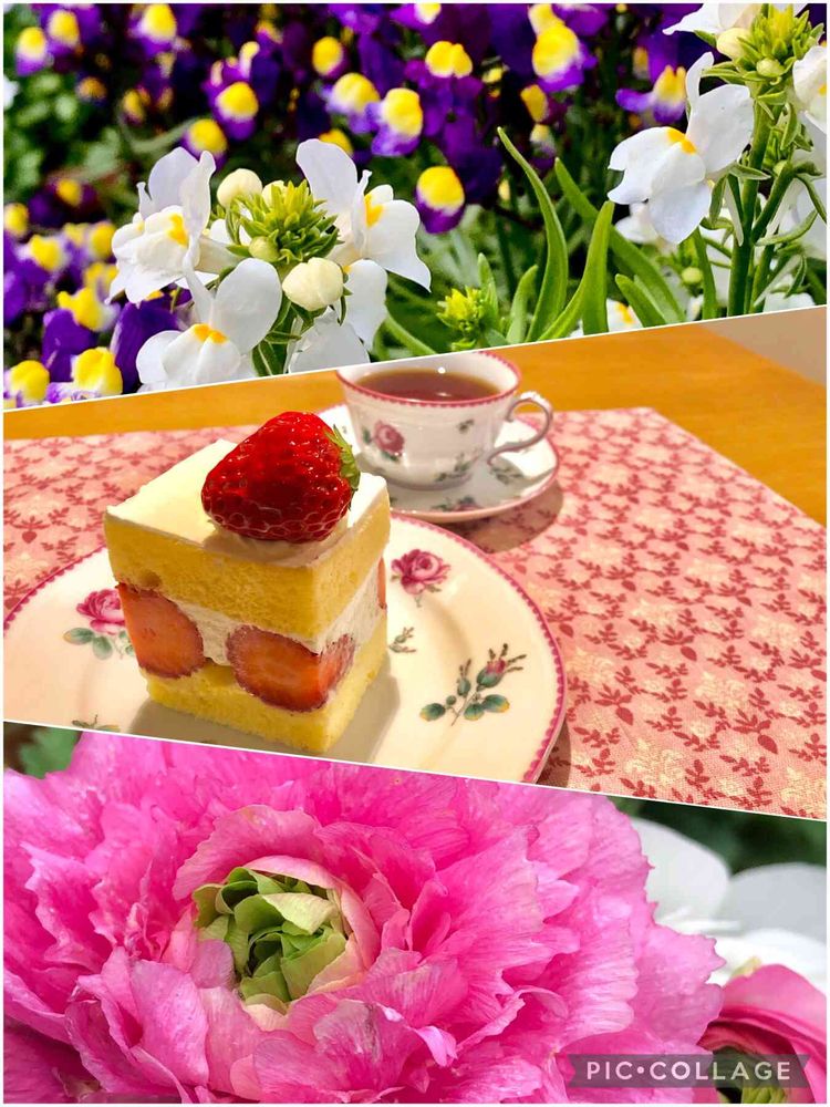 お花は 綺麗で、 ケーキは 美味しそうですね〜😋💕