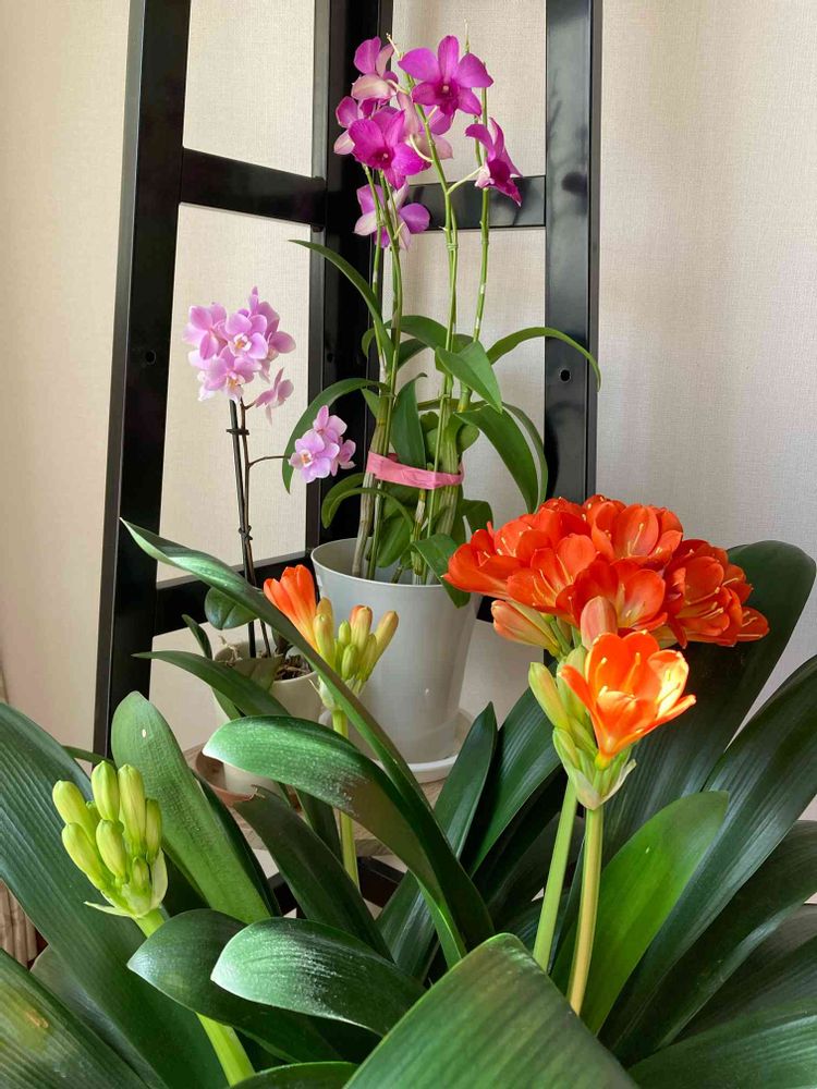 クンシランが優等生なの❣️長く花も咲いているから部屋が明るいです🧡元気が出ます♪