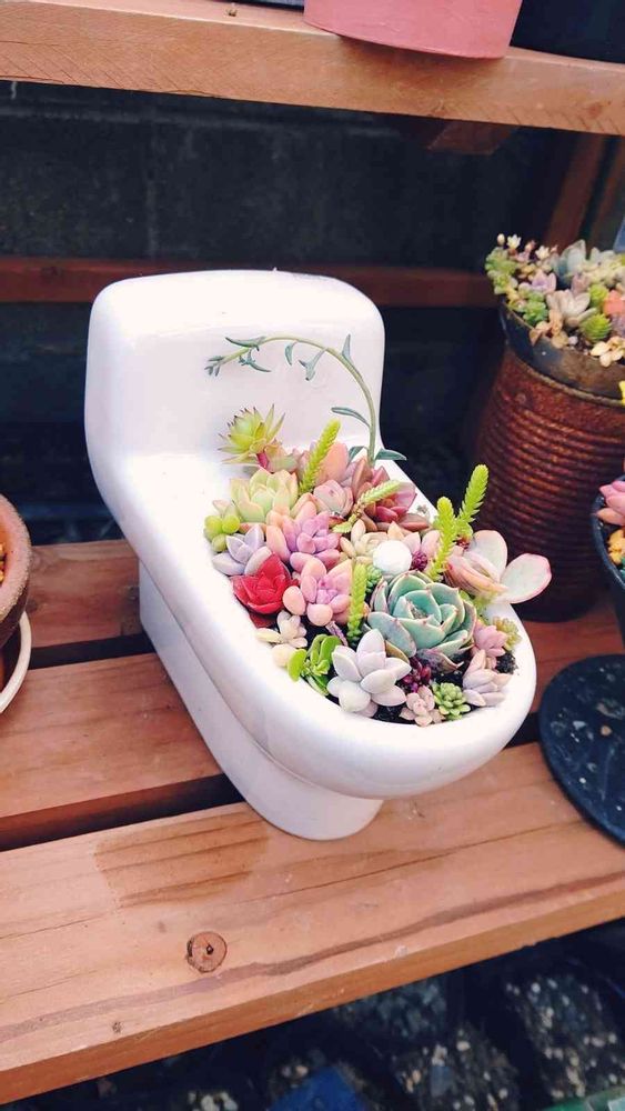 先日リサイクルショップで陶器のリアル便器をみつけたので早速寄せてみました。