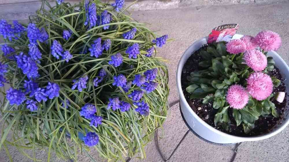 毎年咲いてくれるムスカリと今年初めて見つけた大輪のデイジーです💠