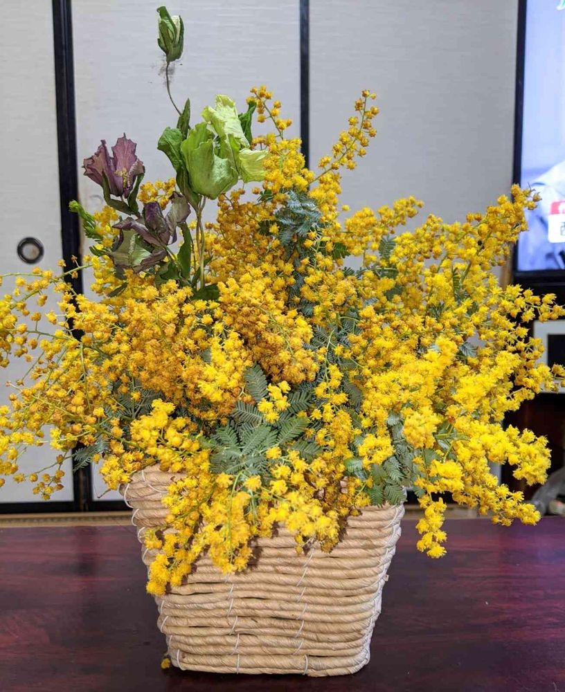 いただき物のミモザでアレンジしたものです💐🌼💐🌼