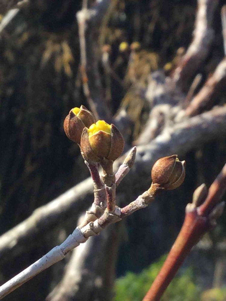 花芽の付いている所が面白いです。皮がキューティクルのようになっています。