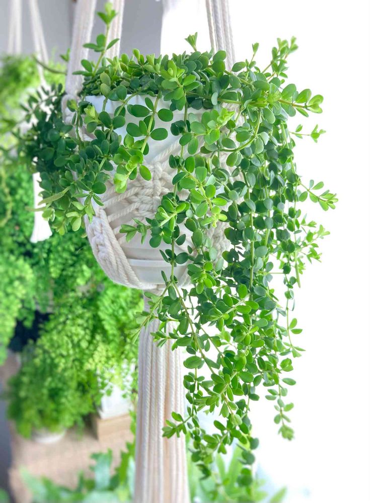 マクラメのプラントハンガーのおかげか、お安いプラ鉢も高級に見えます😅