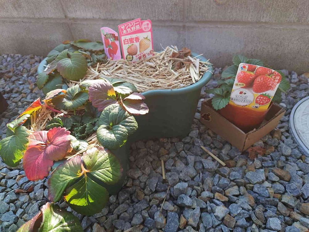 昨年秋に植え付けした白イチゴ、サントリーの“白蜜香”🍓