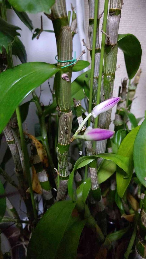 1年前、捨て値価格で、育て方も知らず購入。花の咲く気配無く葉も黄色くなって枯れてきた。さっき気付いた。蕾2つ。
