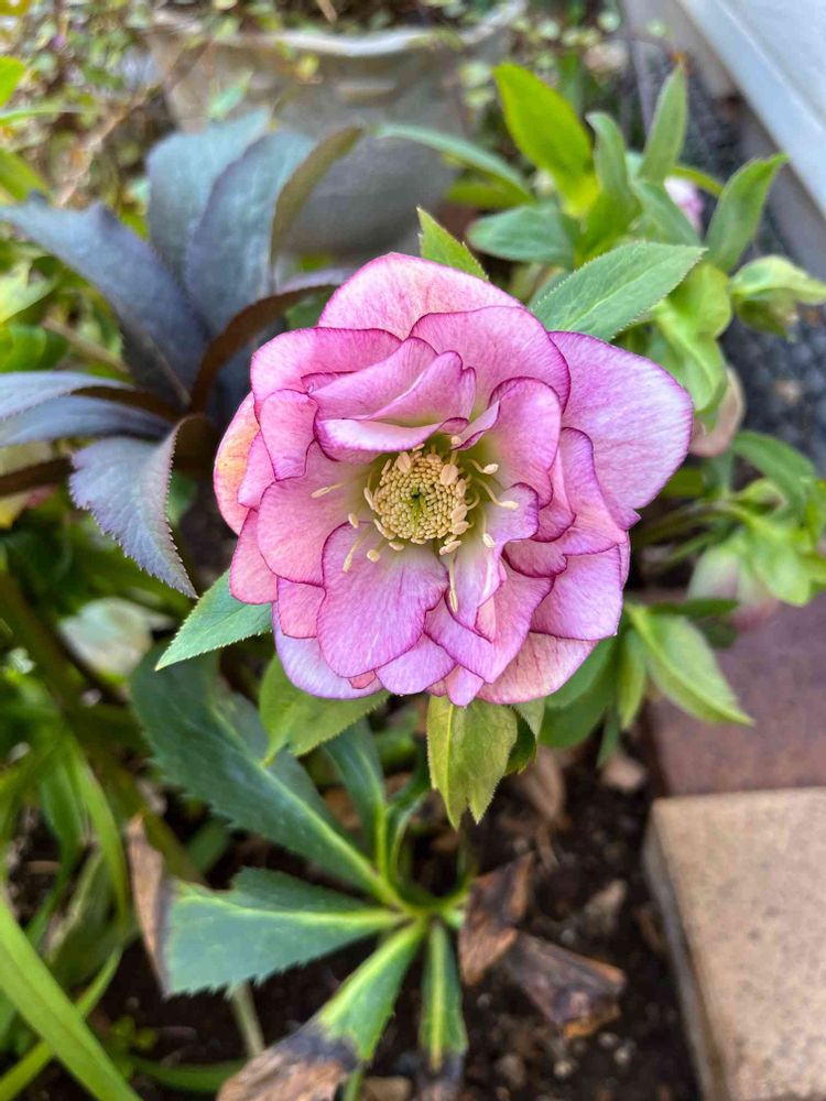 今年のクリスマスローズが咲きました。ちょっといつもより赤い感じ