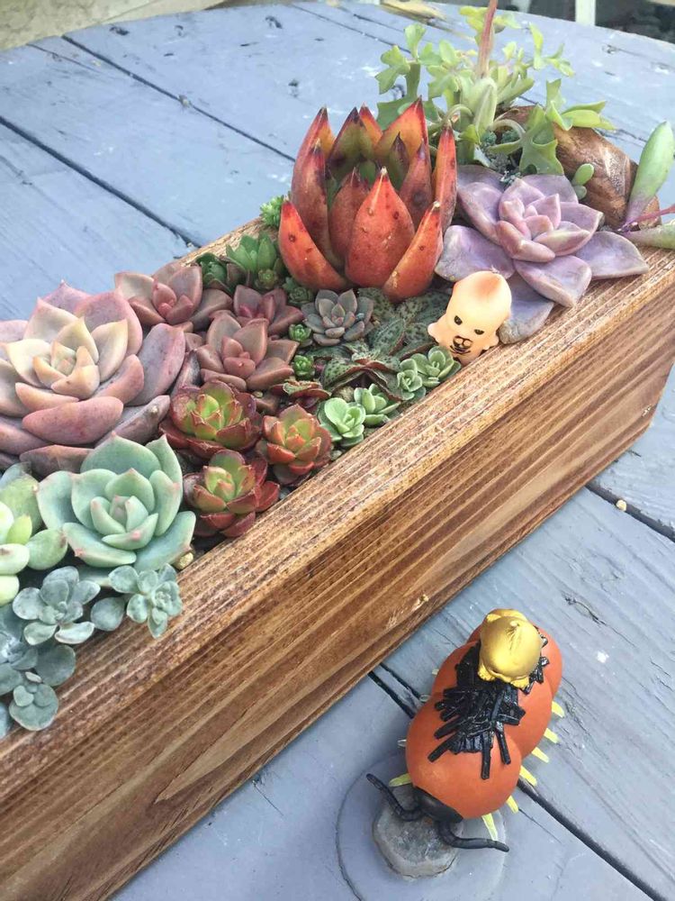 ウッドプランターって寄植えに合うよね💘