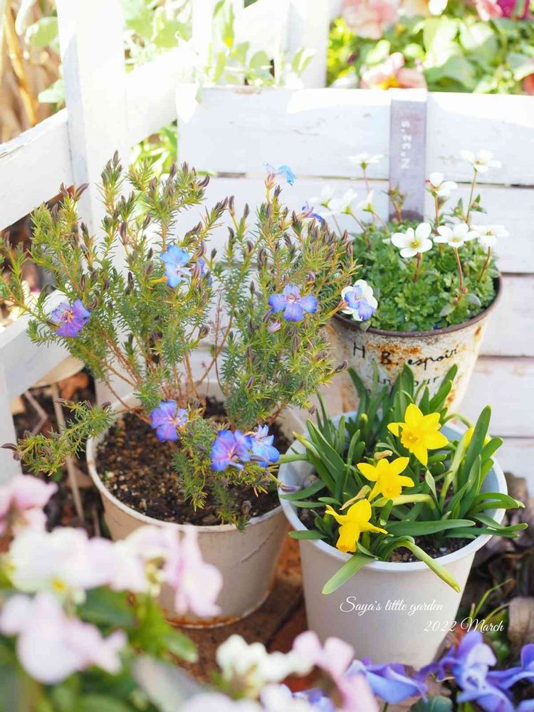 初恋草 スカイハートが再び咲きました💙ミニ水仙ティタティタも💛