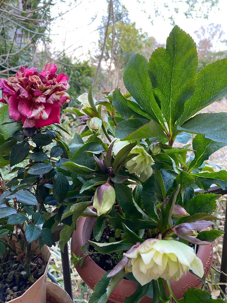 冬の庭に素敵に輝いてくれた薔薇🌹もホッとしてバトンタッチ。