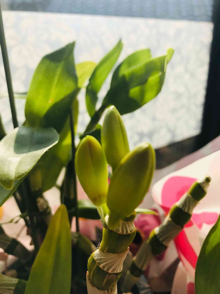 おうちに迎え入れてから5、6年位経ちましたが、全然花芽を付けてくれなかったデンドロビウムが蕾が付きました💕💕
