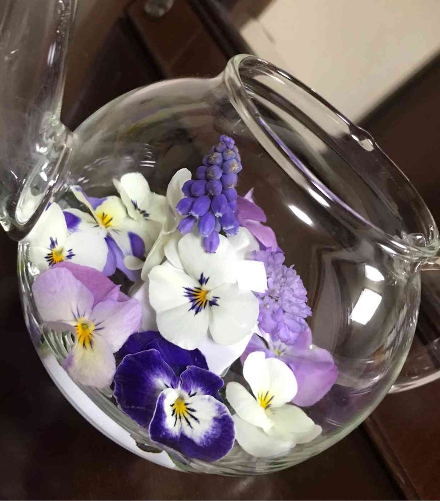 ビオラの中にムスカリを加えるとキリっと締まります✨