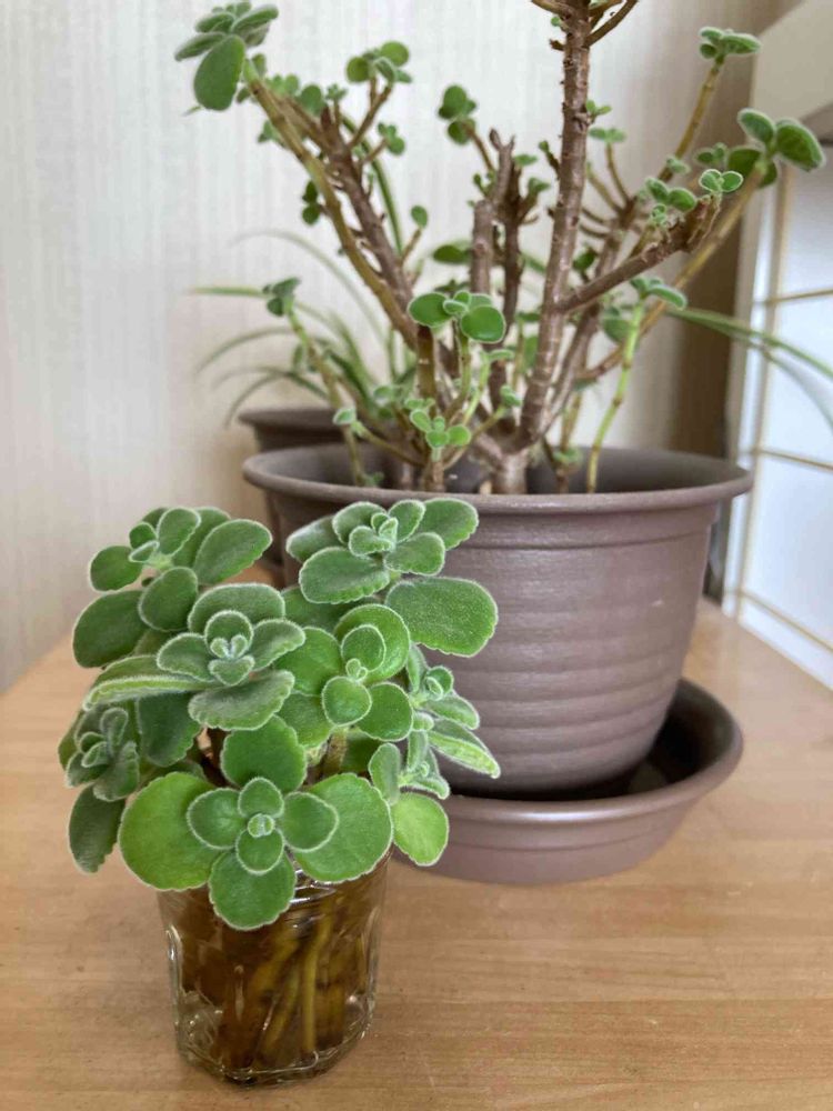 アロマティカス、元気のいい先端を切って、水にさしてたら根がでてきました。そろそろ鉢植えにしないと🪴