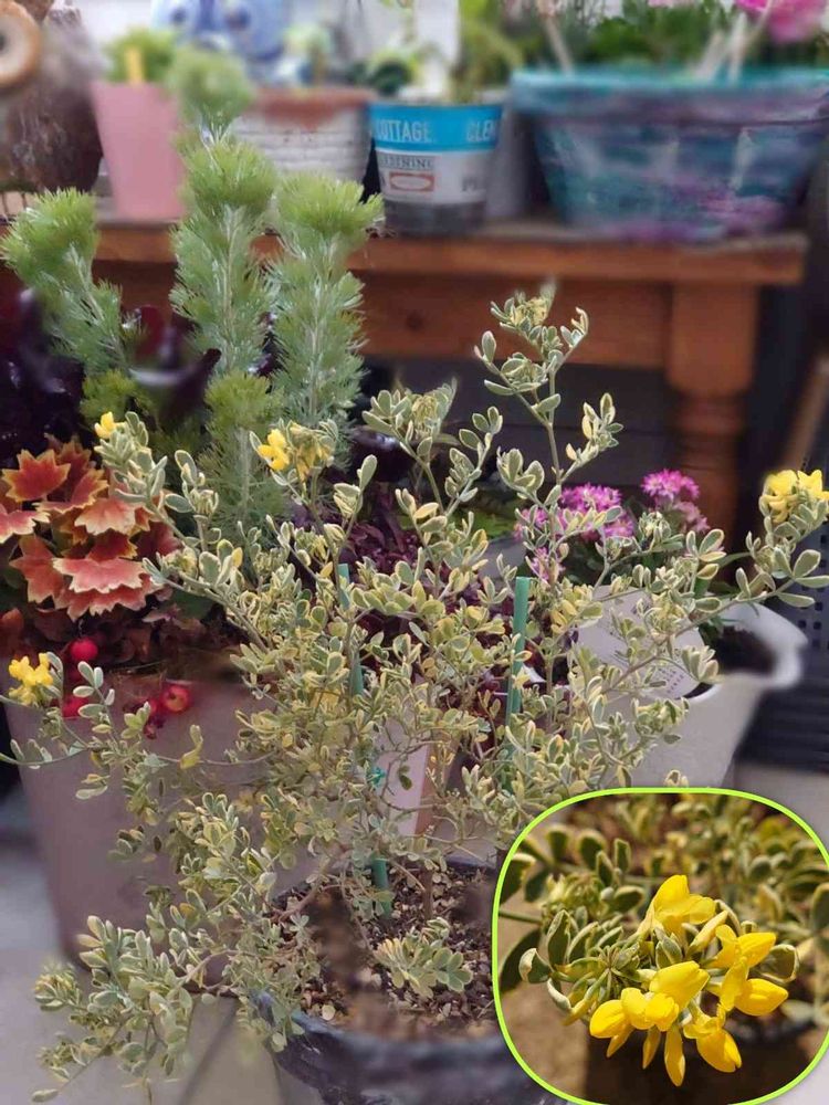 エニシダさんが、斑入りになって『コロニラバレンティナバリエガータ』にグレードアップしたお名前をつけて貰ったのね。フムフム。