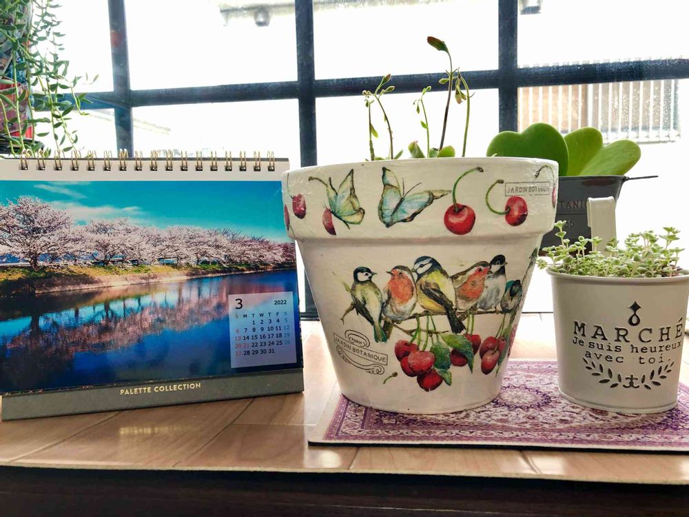 素敵カレンダーとリメ鉢🦜🦜ですね