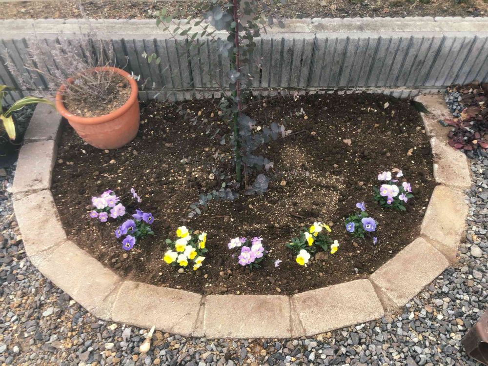 昨年コガネムシに食い荒らされてまっさらになった花壇に、ようやくお花を植えることができましました。右奥にはマリーゴールドの種を蒔きました。これから暖かくなるので他に何を植えようか考え中です。