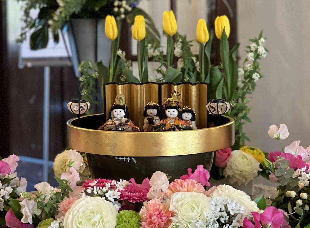お花と可愛いお雛様が出迎えてくれました。