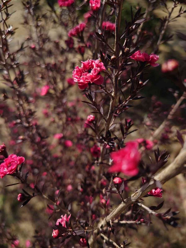 名前に梅と付きますが、梅の種類ではなくて、海外ではティーツリーと呼ばれてます。マヌカハニーのマヌカです😊枝や葉っぱは触ると爽やかな香りがします。