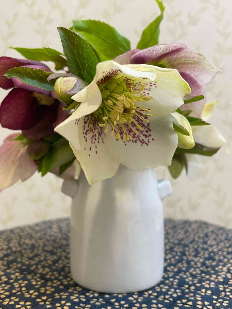 庭に自生しているクリスマスローズ、摘んでみるといろいろなタイプがあっておもしろいです😘久しぶりの0円アレンジ