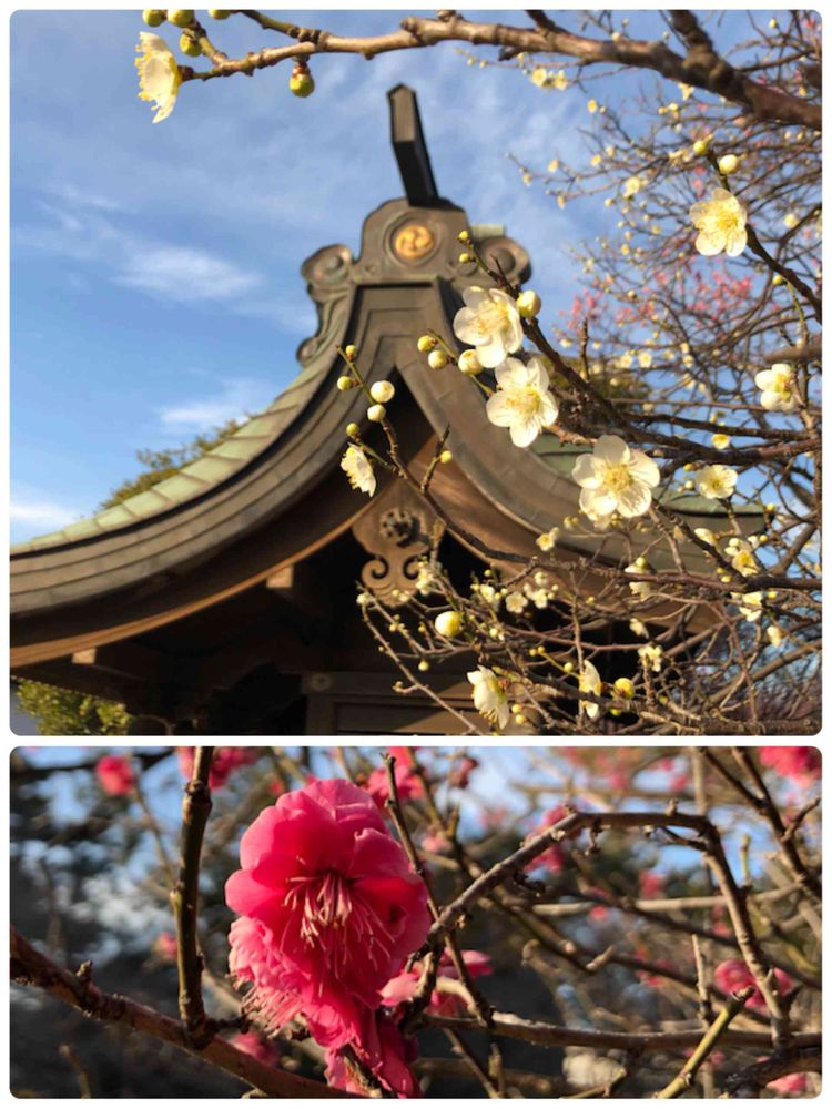 神社⛩には白や濃いピンクの梅も(*゚∀゚*)