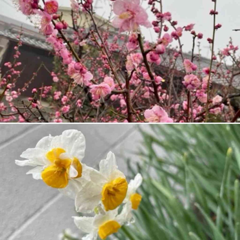 紅梅とニホンスイセン☺️