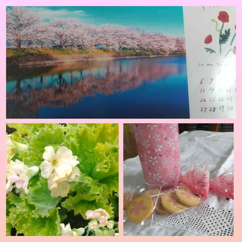 綺麗な桜のカレンダーに美味しそうな
