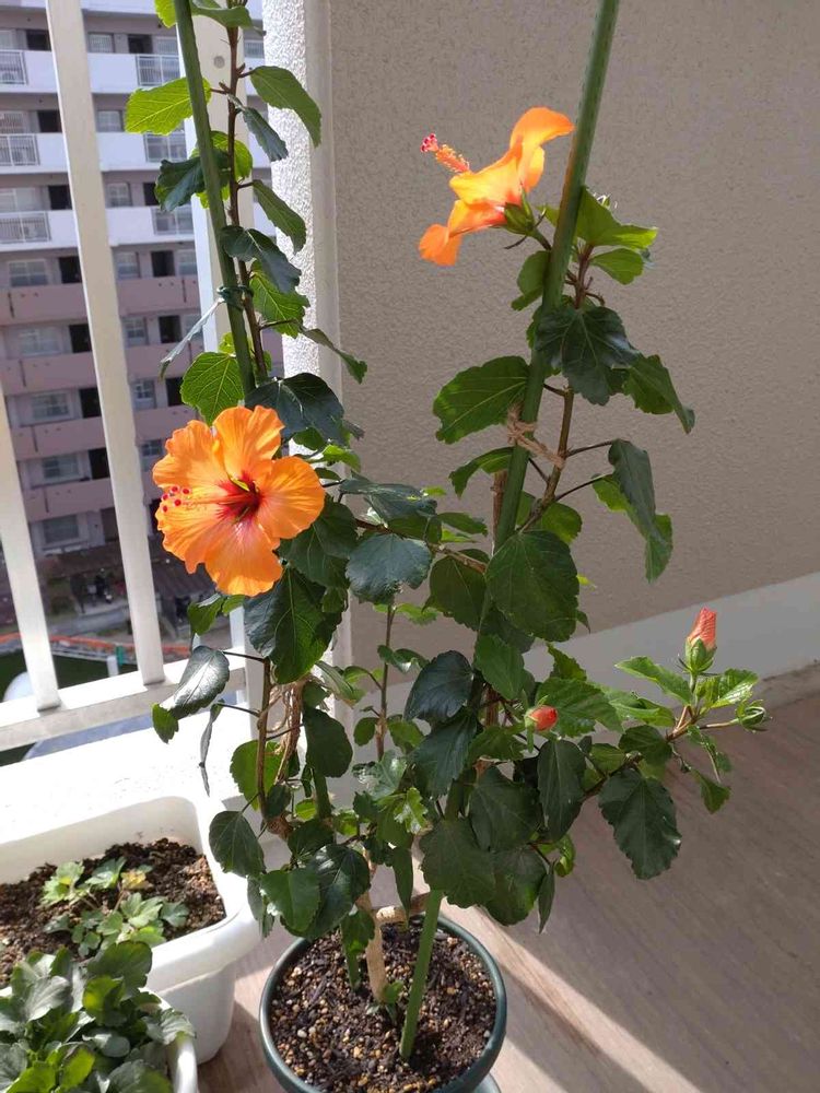 バルコニー/ベランダ,ハイビスカス,オレンジの花の投稿画像