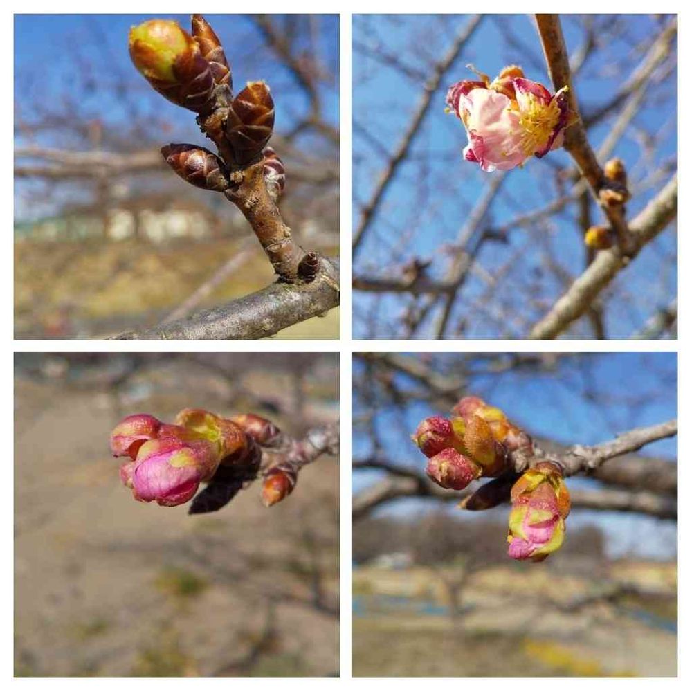 こちらは「ソメイヨシノ」の蕾です。 川原近くの広場の桜並木で、この木だけ 蕾が膨らんでいました😃