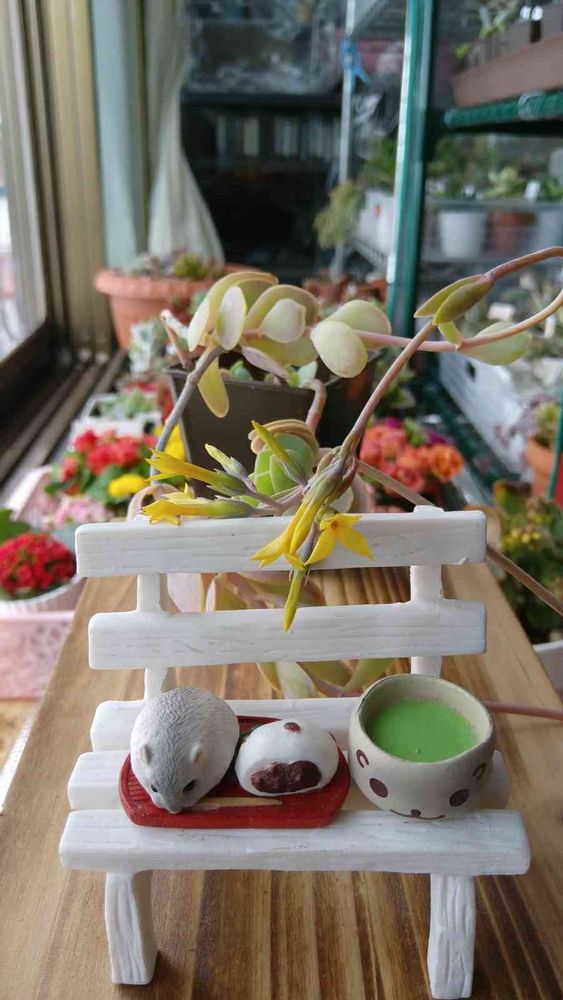 ダイソー出身のカランコエの表示しかなかった名無しちゃんと豆大福とハムちゃんと抹茶です🐹🍵😌✨