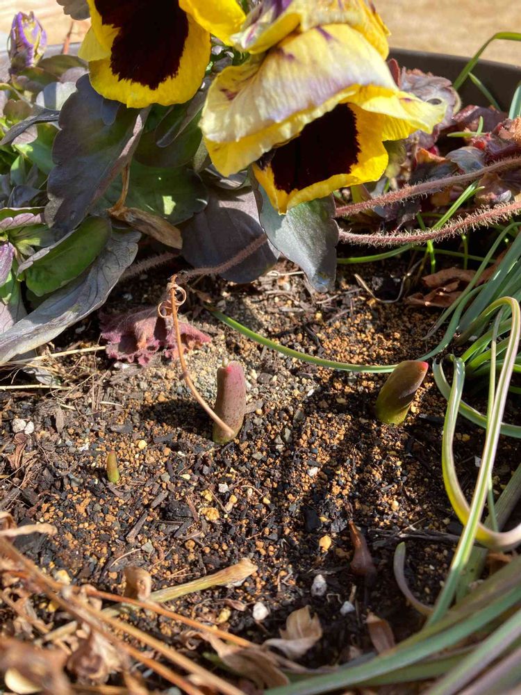 寄せ植えの鉢からチューリップの芽が出ていました〜🌷🌷🌷