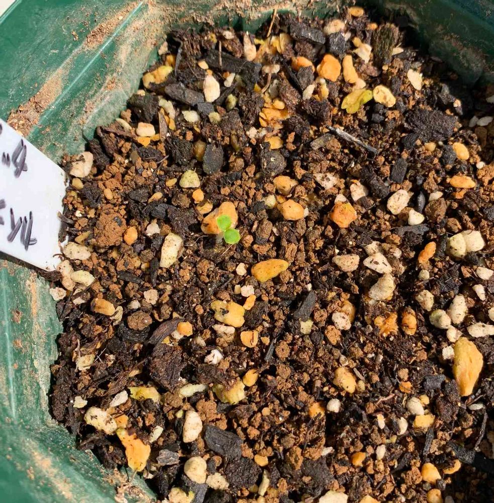 ガブとの交配だからか?細い双葉で成長はゆっくりかなぁ🤔すこーし本葉がチラッと見えてきました