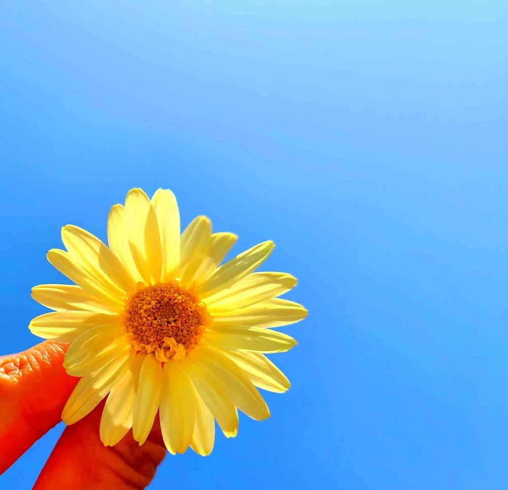 多肉さんたちに囲まれて青空と黃の花が映えますね(^^)