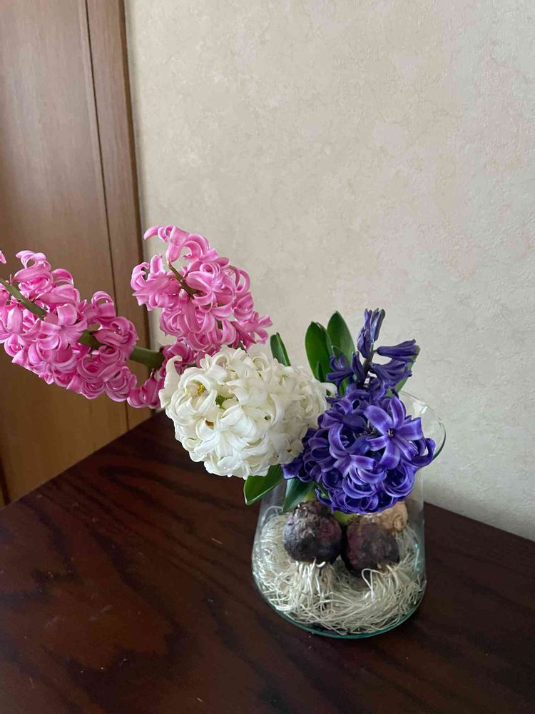 ヒヤシンス三姉妹です💜🤍💗