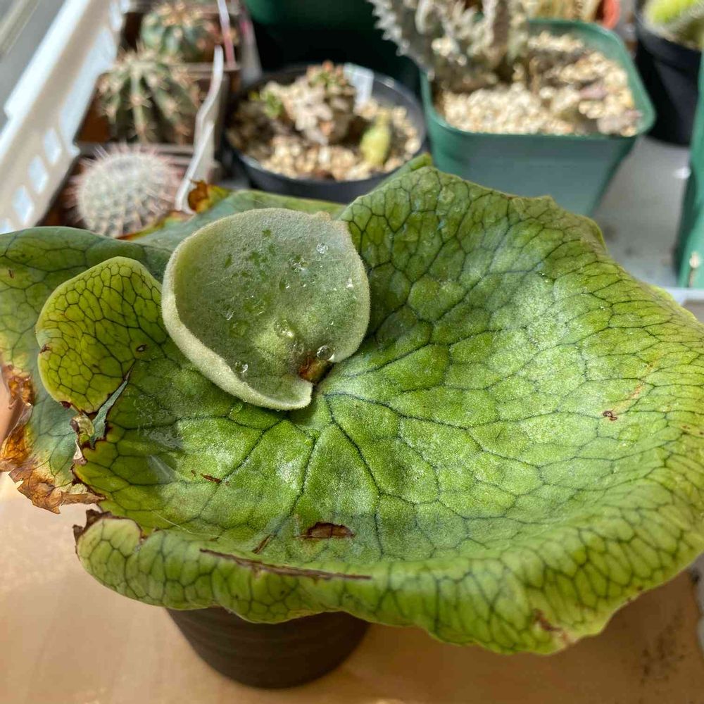 2025.8月に某サイトで購入した【アロカシア チャイ】の 突然変異?なんだろう 購入時、元々有った葉を(1枚目の葉)として、 下から新たな葉が出てきてる状態で到着しました(2枚目の葉) こちらに来て初めて出てきた葉に異変が。。 育て始めて出てきた初めての3枚目、4枚目 (途中から、斑1、斑2、、と続きます) どこまでこの謎の斑入葉が続くのか、 いや止まるのか……記録していきます