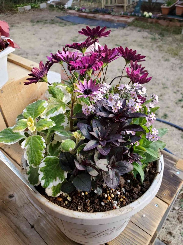 春の寄せ植え。まだまだ、勉強中。