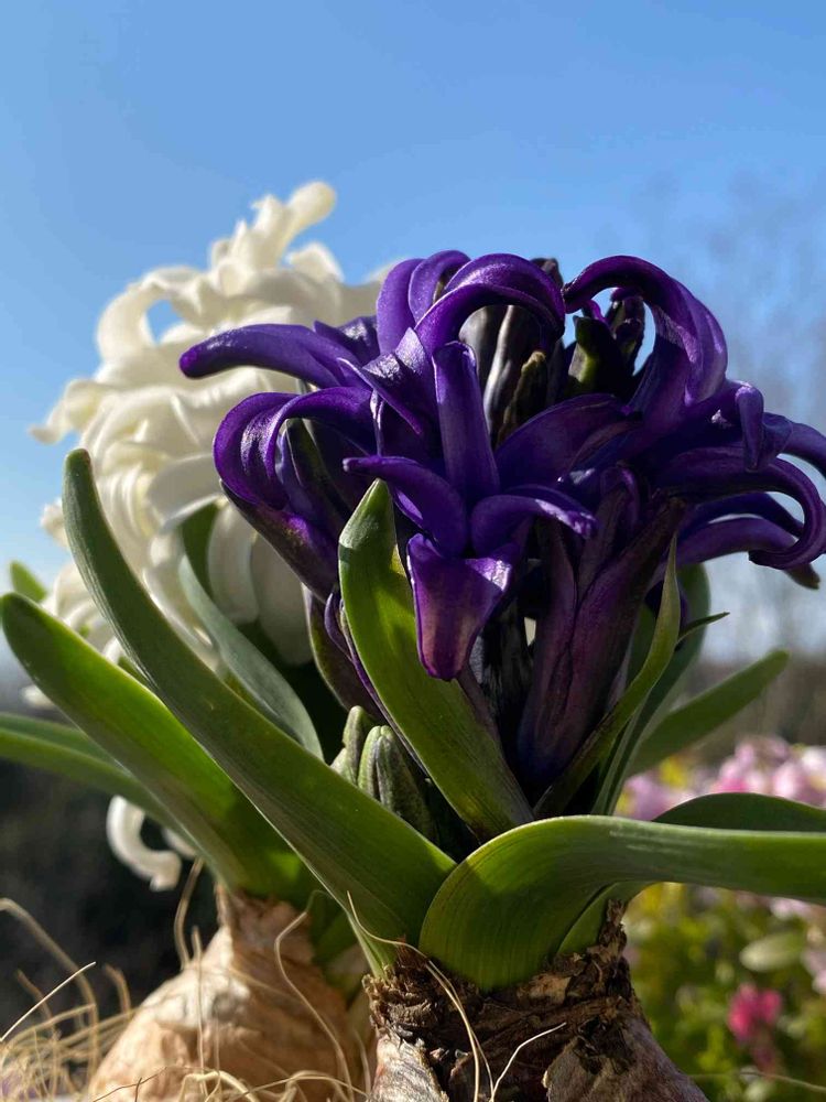 白に続いて、紫のヒヤシンス、とっても素敵です。青空のバックも気持ちがいいです。
